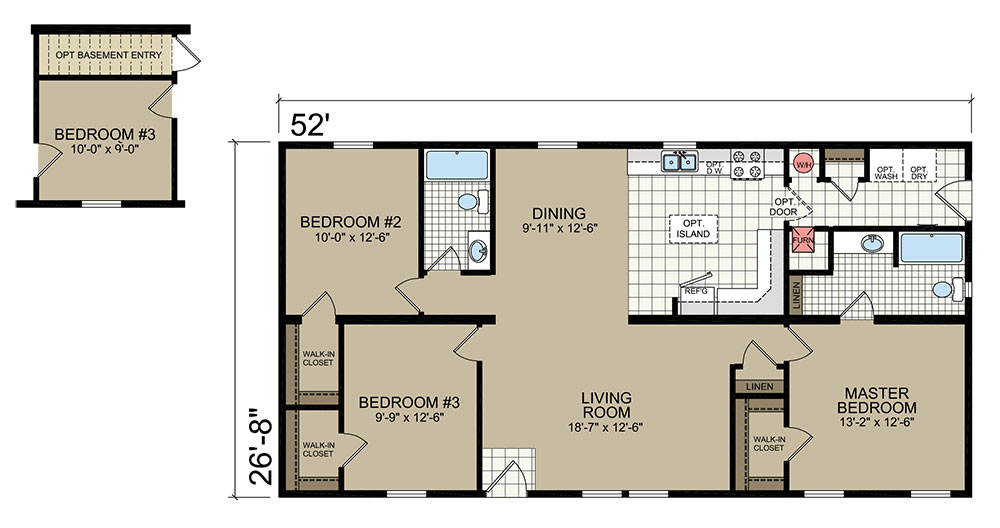 * MSRP pricing is for the base model and selected options only and does not include delivery, land, installation, sitework, foundation, connections to water, sewer, and gas, permitting, taxes, title fees, and site-built/installed items such as wells, septic tanks, drain fields, garages, porches, decks, grading, landscaping, concrete flat work and steps. Additional costs may also be incurred due to the need to achieve code compliance associated with energy efficiency, snow loads, and wind loads for your specific building location. All pricing and specifications are subject to change without notice. MSRP is valid for 14 days following your inquiry. Contact us for a complete price.