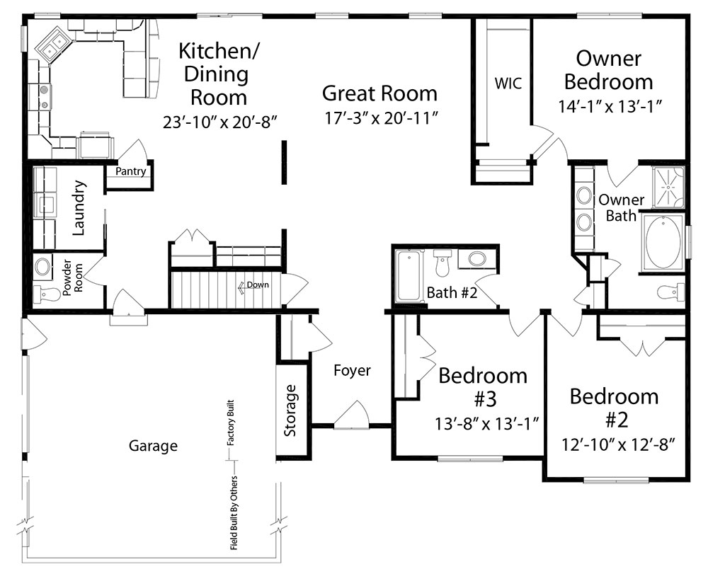 * MSRP pricing is for the base model and selected options only and does not include delivery, land, installation, sitework, foundation, connections to water, sewer, and gas, permitting, taxes, title fees, and site-built/installed items such as wells, septic tanks, drain fields, garages, porches, decks, grading, landscaping, concrete flat work and steps. Additional costs may also be incurred due to the need to achieve code compliance associated with energy efficiency, snow loads, and wind loads for your specific building location. All pricing and specifications are subject to change without notice. MSRP is valid for 14 days following your inquiry. Contact us for a complete price.