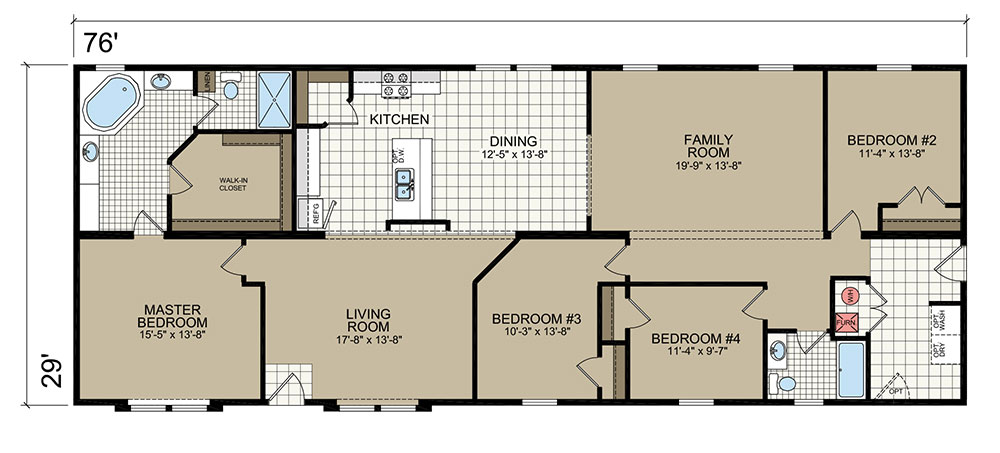 * MSRP pricing is for the base model and selected options only and does not include delivery, land, installation, sitework, foundation, connections to water, sewer, and gas, permitting, taxes, title fees, and site-built/installed items such as wells, septic tanks, drain fields, garages, porches, decks, grading, landscaping, concrete flat work and steps. Additional costs may also be incurred due to the need to achieve code compliance associated with energy efficiency, snow loads, and wind loads for your specific building location. All pricing and specifications are subject to change without notice. MSRP is valid for 14 days following your inquiry. Contact us for a complete price.